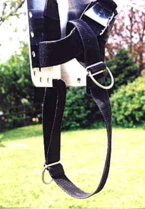 Note the innertubing around the tail of the webbing on the crotch strap. This is to hold in place the excess webbing. I should probably have cut it off once it was properly adjusted but have not done this as it sits comfortably and is not a snag potential.