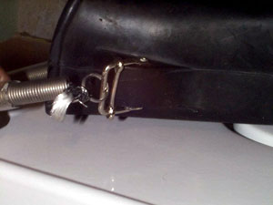 For my spring straps, I followed Dave Dalton's design, with a variation. I didn't cut off the fins' origninal attachement hardware and replace it. Instead, I found a cheap method of attaching the spring to the existing hardware.