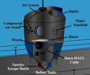 In May 1939, the USS Squalus (pronounced "skwaylus") was one of the U.S. Navy's newest S-type submarines. She was 310 feet long and displaced some 1,450 tons on the surface and 2,000 tons when submerged. She could cruise on the surface