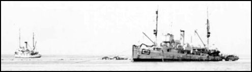 The sister submarine USS Sculpin was there, too. The crew of this vessel had located the sunken Squalus and would now provide reserve air and other support. She was also a valuable reference for those diving on the Squalus. Since they were identical vessels, the divers could locate on the Sculpin the fittings, valves, compartments, etc., they were going to work with on the Squalus. The Sculpin also served as flagship for Admiral Syrus Cole, commander of the salvage force.