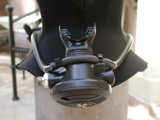 As I started diving doubles in Hogarth fashion, I realized that I could not easily grab the backup reg with my mouth. Analizing the problem, I discovered that the main problem was that, no matter what, the mouthpiece was always pointing downward. So I figured that by keeping its mouthpiece always pointing upward, the problem would be over. And so it did!!